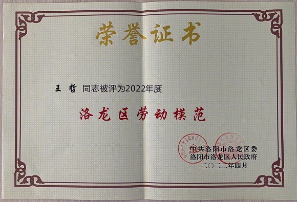 勞動(dòng)創(chuàng )造歷史,勞動(dòng)無(wú)上光榮。洛龍區勞動(dòng)模范表彰大會(huì )近日隆重召開(kāi)。洛陽(yáng)市委常委、洛龍區委書(shū)記張玉杰,洛龍區委副書(shū)記、區長(cháng)韓建軍等區四大班子領(lǐng)導出席會(huì )議。會(huì )上,區領(lǐng)導為榮獲洛龍區勞動(dòng)模范、五一勞動(dòng)獎的單位和個(gè)人頒獎。其中,洛陽(yáng)凱瑞企業(yè)集團被授予“洛龍區五一勞動(dòng)獎狀”稱(chēng)號、集團公司總經(jīng)理王哲榮獲“洛龍區勞動(dòng)模范”榮譽(yù)稱(chēng)號。