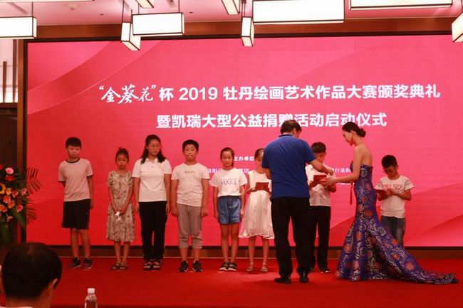 凱瑞集團公益捐贈啟動(dòng)儀式暨“金葵花”杯2019牡丹繪畫(huà)頒獎典禮舉行 “洛陽(yáng)地脈花***宜,牡丹尤為天下奇”,牡丹寓意吉祥富貴、繁榮昌盛,是洛陽(yáng)十三朝古都的精神象征。千百年來(lái),其天姿國色更為歷代詩(shī)人、書(shū)畫(huà)家稱(chēng)頌。 8月6日上午9時(shí)30分,凱瑞集團大型公益捐贈活動(dòng)啟動(dòng)儀式暨“金葵花”杯2019牡丹繪畫(huà)藝術(shù)作品大賽頒獎典禮在國寶·鉑瑞酒店隆重舉行。 △ 現場(chǎng)圖 本次活動(dòng)由中共洛陽(yáng)市委宣傳部主辦,洛陽(yáng)日報報業(yè)集團、洛陽(yáng)市文聯(lián)、凱瑞集團等單位聯(lián)合承辦,共頒發(fā)八大獎項164幅獲獎作品,凱瑞集團領(lǐng)導、洛陽(yáng)日報報業(yè)集團領(lǐng)導、河南省美術(shù)家協(xié)會(huì )顧問(wèn) 王 繡、所有獲獎人員等受邀出席本次頒獎活動(dòng)。 △ 洛陽(yáng)日報報業(yè)集團領(lǐng)導致辭 首先,洛陽(yáng)日報報業(yè)集團領(lǐng)導致辭發(fā)言,洛陽(yáng)報業(yè)集團對凱瑞集團此次頒獎典禮及其給予公益事業(yè)的大力支持表示崇高的敬意和衷心的感謝,并宣布“金葵花”杯2019牡丹繪畫(huà)藝術(shù)作品大賽頒獎典禮正式開(kāi)始。 頒獎典禮之后,凱瑞集團董事長(cháng)王新立先生上臺致辭,他詳細闡述了凱瑞集團“服務(wù)社會(huì )、回報社會(huì )“的企業(yè)宗旨,并強調“教育是社會(huì )發(fā)展的大事,也是振興國家的希望所在。凱瑞自1986年創(chuàng )立以來(lái),先后為福利院、貧困學(xué)生捐款,建立教育基金,積極投身社會(huì )公益事業(yè),重視慈善工作,未來(lái)將持續開(kāi)展各項社會(huì )公益活動(dòng),為洛陽(yáng)市公益事業(yè)的發(fā)展做出更大的貢獻?!?/p> △ 凱瑞集團董事長(cháng)致辭 本次比賽的所有參賽作品,由凱瑞集團出資30萬(wàn)元公益認購,后續將進(jìn)行公益拍賣(mài),所得善款用于扶貧濟弱,助力公益事業(yè)。 △ 捐贈儀式現場(chǎng)圖 下一階段,凱瑞集團將攜手大賽組委會(huì ),在貧困縣嵩縣山區籌建20座“凱瑞希望書(shū)屋”,并資助一批貧困大學(xué)生,圓他們的大學(xué)夢(mèng)。公益從不是臨時(shí)和短期的,凱瑞希望通過(guò)本次活動(dòng)呼吁全社會(huì )一起參與公益事業(yè),讓更多的人受益。 △ 現場(chǎng)圖 儀式后,出席本次活動(dòng)的各位領(lǐng)導一同移步到國寶大廈一樓,現場(chǎng)品鑒王繡老師經(jīng)典繪畫(huà)作品及本次“金葵花”杯獲獎的164幅牡丹繪畫(huà)作品,現場(chǎng)更有廣大書(shū)畫(huà)愛(ài)好者學(xué)習觀(guān)摩。 △ 現場(chǎng)圖 自今日起,獲獎優(yōu)秀繪畫(huà)作品將在國寶大廈一樓國寶·紅瞰城市展廳持續展覽一個(gè)月,歡迎各界朋友親臨品鑒! △ 現場(chǎng)圖